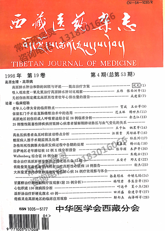 西藏醫(yī)學(xué)雜志---瘡瘍靈在高原地區(qū)的臨床應(yīng)用